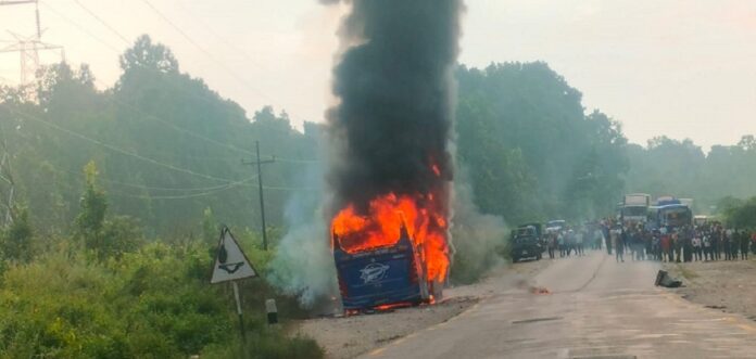 रौतहटको चन्द्रपुर नगरपालिका–४, पश्चिम लच्का नजिक बुधबार बिहान एक यात्रुवाहक बसमा अचानक आगलागी भएको छ।