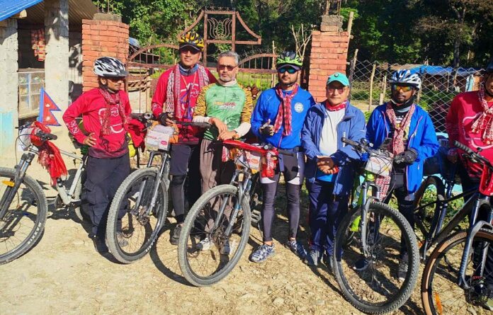 काठमाडौं । गत कात्तिक २३ गतेदेखि पूर्वी नेपालको झापाबाट सुरु भएको साइकल यात्रा बाँके पुगेको छ । झापा भद्रपुर ७ का जीवनकुमार श्रेष्ठ, देवीबहादुर श्रेष्ठ, ५ का मनोज सिंह, ४ का समीर पोखरेल र हल्दिबारी २ का विश्वचन्द्र महतो झापाबाट साइकलयात्रा सुरु गरेको आठौं दिनमा बाँके प्रवेश गर्नुभएको हो । भद्रपुर साइकल समाजको नाममा यात्रा सुरु गरिएको हो ।