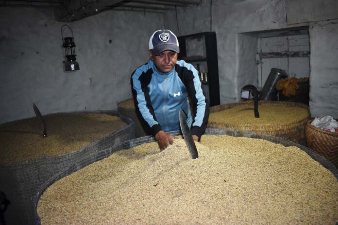 काठमाडौं । म्याग्दीको मङ्गला गाउँपालिका, सिमका ध्रुवकुमार खत्रीले यस पटक १२० मुरी धान भित्र्याउनुभयो । करिब तीन सय वर्ष पुरानो घरको तल्लो तलामा छ वटा ठुला भकारी धानले टम्म भरिएका उहाँले बताउनुभयो । वैदेशिक रोजगारी छाडेर खत्रीले गाउँ फर्किई विगत छ वर्षदेखि स्थानीय रैथाने जातको धान खेती गर्दै आउनुभएको हो । खत्रीले यस वर्ष घरवरपरको करिब एक सय रोपनीभन्दा बढी खेतमा रैथाने जातका गौरिया र जेठोबुढो धान लगाउनुभएको थियो । गत वर्ष एक सय मुरी धान उत्पादन भएकोमा यसपालि उहाँले १२० मुरी धान उत्पादन गर्नुभयो । उहाँले भन्नुभयो, “मेरो बुवाका दुई भाइका परिवार काठमाडौँतिरै बस्नुहुन्छ । उहाँहरूले यहाँ खेती गर्न छाड्नुभएको छ । ठुलो र माइलो बुवाको खेतसमेत भाडामा लिएर स्थानीय रैथाने जातको धान खेती गरेको छु । गत वर्ष एक सय मुरी धान बिक्री गरेको हुँ । यसपालि १५० मुरी धान फलाउने लक्ष्य भए पनि १२० मुरीसम्म धान फल्यो ।”