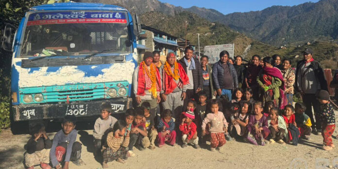 काठमाडौं । भौगोलिक रूपमा विकट र दुर्गम क्षेत्रमा पर्ने जिल्लाको धवलागिरि गाउँपालिका-५ मल्कवाङमा पहिलोपटक बस पुगेको छ । सदरमुकाम बेनीबजारबाट यात्रु बोकेर शनिबार पहिलोपटक ध१ख ३०८ नम्बरको बस मल्कवाङ पुगेको हो । बसका धनी जगत दगामी मगर र चालक श्याम मिजारलाई स्थानीयले अबिर र माला लगाएर स्वागत गरेका छन् । धवलागिरि-५ मल्कवाङका वडाध्यक्ष अमर छन्तयालसहित जनप्रतिनिधि, स्थानीय अगुवा, आमा समूह र युवा क्लबका प्रतिनिधिहरूले चालक र सवारीधनीलाई स्वागत गर्नुका साथै खुसीयाली मनाएका हुन् ।