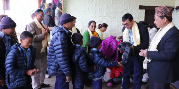 काठमाडौं । ताप्लेजुङको फुङलिङस्थित बालमन्दिर आधारभूत विद्यालयका फरक क्षमताका विद्यार्थीलाई न्यानो कपडा वितरण गरिएको छ । फुङलिङ नगरपालिका–४ मा रहेको उक्त विद्यालयका फरक क्षमताका विद्यार्थीलाई छोक्याला उक्यापको परिवारले न्यानो कपडा वितरण गरेकाे हो ।