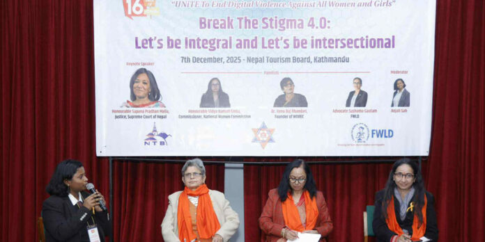 काठमाडौं । महिला हिंसा विरुद्धको १६ दिने अभियानअन्तर्गत नेपाल ल क्याम्पस, महिला, कानुन र विकास मञ्च (एफडब्लुएलडी) तथा नेपाल टुरिजम बोर्डले संयुक्तरूपमा आयोजना गरेको विशेष छलफल कार्यक्रममा सर्वोच्च अदालतकी न्यायाधीश सपना मल्ल प्रधानले प्रविधिलाई हिंसाको हतियारका रूपमा दुरुपयोग हुन नदिनेमा सबैको जिम्मेवारी रहेको बताइन्। कार्यक्रमलाई सम्बोधन गर्दै उनले समाजले परिवर्तनबाट डराउनुभन्दा प्रविधिसँग समन्वय गर्दै अघि बढ्नुपर्ने आवश्यकता औंल्याइन्। परम्परागत सोच, लघुताभाष र पितृसत्तात्मक संरचनाले हिंसाको स्वरूप फेरिए पनि त्यसको अस्तित्व अझै हट्न नसकेको उनको बुझाइ छ। “हिंसा घटेको होइन, रूप बदलिएको मात्र हो,” उनले भनिन्, “अदृश्य शक्तिले महिलाको आवाजलाई दबाइरहेका कारण अन्याय निरन्तर छ।”
