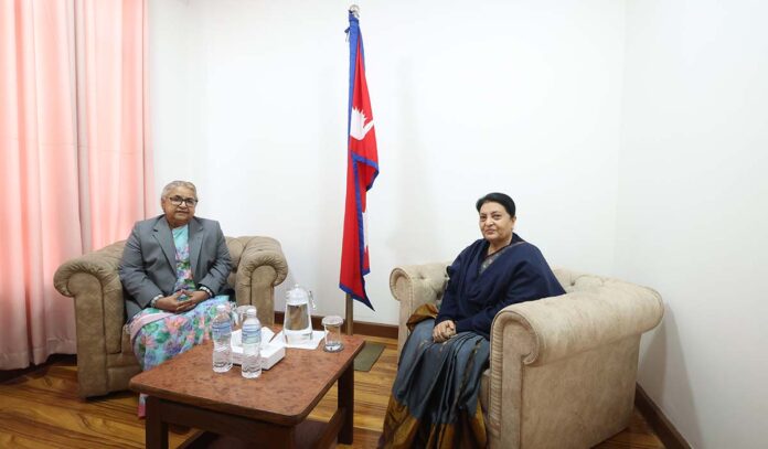 काठमाडौं । प्रधानमन्त्री सुशीला कार्कीसँग पूर्व राष्ट्रपति विद्यादेवी भण्डारीले भेटवार्ता गर्नुभएको छ । सिंहदरबारस्थित प्रधानमन्त्री तथा मन्त्रिपरिषद् कार्यालयमा पुगेर पूर्व राष्ट्रपति भण्डारीले प्रधानमन्त्री कार्कीसँग भेट गर्नु भएको हो । भेटम पछिल्लो राजनीतिक घटनाक्रम र समसामयिक विषयमा कुराकानी भएको प्रधानमन्त्रीको सचिवालयले जनाएको छ । कार्की नेपालको पहिलो महिला प्रधानमन्त्री हुनुहुन्छ भने भण्डारी नेपालको पहिलो महिला राष्ट्रपति हुनुहुन्छ । गोरखापत्र