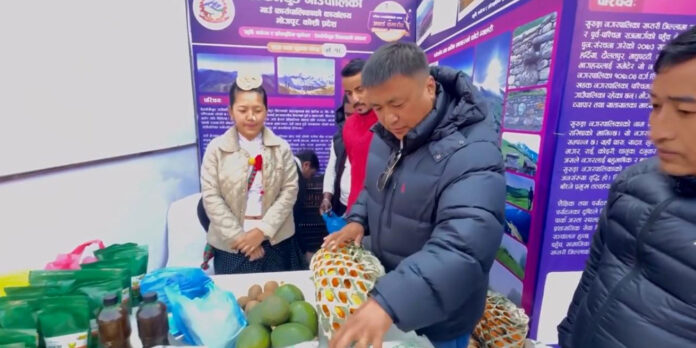 काठमाडौं । भोजपुरको स्थानीय पालिकाका कृषकले उत्पादन गरेको स्थानीय खाद्यान्न तथा सामग्रीहरूको प्रचार–प्रसार तथा ब्रान्डिङ गर्नमा टेवा पुग्ने उद्देश्यले काठमाडौँस्थित बत्तिस पुतलीमा प्रदर्शनीमा राखिएको छ । भोजपुरबाट टेम्केमैयुङ गाउँपालिका र षडानन्द नगरपालिकाले स्थानीय उत्पादनलाई प्रदर्शन गरेको हो । टेम्केमैयुङ गाउँपालिकाबाट अध्यक्ष सरोज राईको नेतृत्वमा स्थानीय उत्पादन कोदो, फापरको पिठो, एभोकाडो, मौरीको मह, किवी, मकैको चामल, सिस्नो, सुन्तला, चिया, खुर्सानी, सिमीलगायत स्थानीय उत्पादन रहेका छन् । षडानन्द नगरपालिकाकी उपप्रमुख प्रमीला राईको नेतृत्वमा रुद्राक्षको माला, सिलम, फर्सी, चिराइतो, चामल, राडिपाखी अन्य प्रदर्शनीका सामग्रीहरू स्टलमा प्रदर्शन गरिएको छ ।