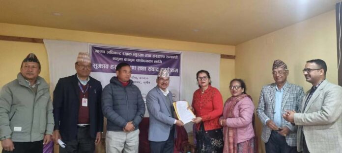 साथै आयोगले पनि चासो राखे उक्त विधेयक पास हुन सक्ने उहाँको भनाइ छ । यस्तै कर्णाली प्रदेशका मुख्य न्यायधिवक्ता वरिष्ठ अधिवक्ता कृष्णबहादुर हमालले मानव अधिकार रक्षकको कानुन प्रदेशको एकल अधिकारभित्र नरहेकाले सङ्घीय सरकारले नबनाएसम्म प्रदेश सरकारले बनाउन नसक्ने हुँदा अलपत्र परेको बताउनुभयो । कानुनका लागि राष्ट्रिय मानव अधिकार आयोगमार्फत जानुपर्ने उहाँले सुझाव दिनुभयो । राष्ट्रिय मानव अधिकार आयोग सुर्खेत कार्यालयका निमित्त प्रमुख मानबहादुर कार्कीले मानव अधिकार रक्षकको सुरक्षाका लागि ऐनको आवश्यकता बढेको हुँदा त्यसका लागि कानुनको सुझाव मागिएको जनाउनुभयो । आयोगले बनाउन लागेको कानुनमा कोष र भौतिक सुरक्षाको व्यवस्था गरेको भन्दै मानव अधिकारलाई सबैले साझा विषय बनाउनुपर्नेमा जोड दिनुभयो । गोरखापत्र