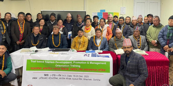 काठमाडौं । गोरखा र लमजुङ जिल्लाका पाँच स्थानीय तहलाई समेटेर ‘बुद्ध हिमाल–हिमालचुली ग्रेट लेक्स सर्किट’ नामक नयाँ पदमार्ग विकास गरिने भएको छ। नयाँ अन्वेषण गरिएको यो पदमार्गले गोरखाको बारपाक सुलिकोट र अजिरकोट गाउँपालिका तथा लमजुङको दूधपोखरी, दोर्दी र मर्स्याङ्दी गाउँपालिकालाई समेट्ने जनाइएको छ। पदमार्ग विकासका लागि कार्ययोजना तयार गर्ने उद्देश्यले गोरखाको अजिरकोट गाउँपालिका–भच्चेकमा आयोजना गरिएको तीनदिने क्षमता अभिवृद्धि तालिम आज सम्पन्न भएको छ। नयाँ पदमार्गको विकास, प्रवर्द्धन र व्यवस्थापनमा सरोकारवालाको क्षमता सुदृढ बनाउने लक्ष्यसहित आयोजित तालिममा पाँचै गाउँपालिकाका उपाध्यक्ष, पर्यटन उद्यमी, सामुदायिक वन उपभोक्ता समूह, पशुधन उद्यमी तथा सांस्कृतिक समूहका सदस्य गरी २५ जनाको सहभागिता रहेको थियो।