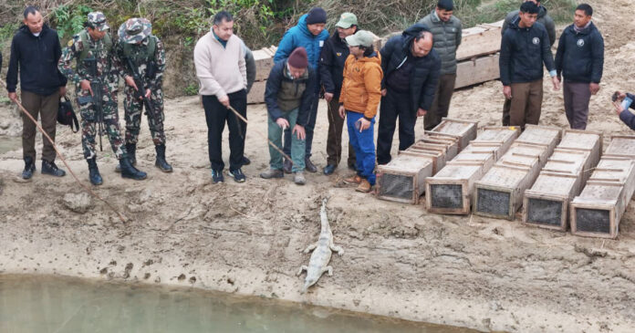 काठमाडौं । घडियाल गोही प्रजनन्का लागि चर्चित बन्दै गएको बर्दिया राष्ट्रिय निकुञ्जले बबई नदीको परेवा ओडारमा फेरी दश वटा घडियाल गोहीका बच्चा प्राकृतिक बासस्थानमा छोडेको छ । वन तथा वातावरण मन्त्रालयका सचिव गोविन्द प्रसाद शर्माले बबई नदिमा १० ओटा गोहीका बच्चा प्राकृतिक बासस्थानमा छोड्नु भएको हो । निकुञ्जको हाता भित्र हुर्किएका ४ वर्ष उमेरका ५ ओटा भाले र ५ ओटा पोथी घडियाल गोही प्राकृतिक बासस्थानमा छोडिएको हो । बबई नदीको परेवा ओडार क्षेत्र बर्दिया राष्ट्रिय निकुञ्ज भित्र नै पर्दछ । राष्ट्रिय निकुञ्ज तथा वन्यजन्तु संरक्षण विभागका उपमहानिर्देशक बेदकुमार ढकाल, बर्दिया राष्ट्रिय निकुञ्जका वरिष्ठ संरक्षण अधिकृत डा अशोक कुमार राम र जबरजंग गणका निमित्त गणपति श्री मुकुन्द न्यौपाने लगाएत निकुञ्जका कर्मचारीहरू गोहीको बच्चा छोड्ने कार्यक्रममा सहभागी हुनुभएको थियो ।