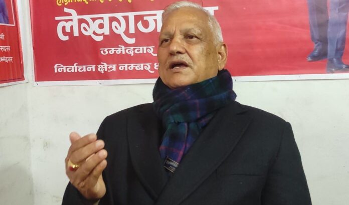 काठमाडौं । नेकपा (एमाले) का उपमहासचिव लेखराज भट्टले आफ्नो उम्मेदवारी कैलालीका लागि मात्र नभएर समग्र सुदूरपश्चिम र राष्ट्रकै निमित्त भएको बताउनुभएको छ । कैलाली–४ बाट प्रतिनिधि सभाका उम्मेदवार समेत रहेका भट्टले आइतबार अत्तरियामा क्षेत्रीय निर्वाचन सम्पर्क कार्यालयको उद्घाटनपछि पत्रकारसँग बोल्दै सुदूरपश्चिम प्रदेशमा १२ सिट जित्ने दाबी समेत गर्नुभयो । २१ फागुनमा हुने चुनावमा एमालेले सुदूरपश्चिममा रणनीति अनुसार चुनावी परिचालन गरेको भए पनि १२ सिट भने ढुक्कसँग विजयी हासिल गर्ने उहाँको भनाइ छ । कैलाली–४ मा आफ्नो प्रतिस्पर्धा नेपाली कांग्रेससँगै हुने उहाँले बताउनुभयो ।