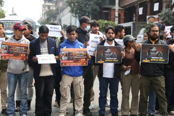 काठमाडौं । सुर्खेतको वीरेन्द्रनगरकी १६ वर्षीया किशोरी इनिसा विकको सामूहिक बलात्कारपछि भएको हत्यामा संलग्नलाई कडा कानुनी कारबाहीको माग गर्दै काठमाडौँमा विरोध प्रदर्शन गरिएको छ । शुक्रबार काठमाडौँको माइतीघर मण्डलामा भेला भएका अधिकारकर्मी तथा नागरिक समाजका प्रतिनिधिहरूले उक्त जघन्य अपराधको घोर भर्त्सना गर्दै दोषीलाई उन्मुक्ति नदिन सरकारको ध्यानाकर्षण गराएका छन् । प्रदर्शनकारीले आगामी दिनमा यस्ता अमानवीय घटना हुन नदिन सरकारलाई कडा कदम चाल्न दबाब दिएका हुन् । विरोध कार्यक्रममा बोल्दै सामाजिक अभियन्ता कविता चन्द सोडारीले हत्या र बलात्कार जस्ता जघन्य अपराधका घटना पुनः दोहोरिन नदिन आवश्यक परे कानुनमा संशोधन गरेर भए पनि कडा व्यवस्था गर्नुपर्नेमा जोड दिनुभयो । उहाँले अपराधीहरू उत्साहित हुनुमा जिम्मेवार निकायको फितलो अनुसन्धान र ढाकछोप गर्ने प्रवृत्ति मुख्य कारण रहेको आशङ्का व्यक्त गर्दै आक्रोश समेत प्रकट गर्नुभयो ।
