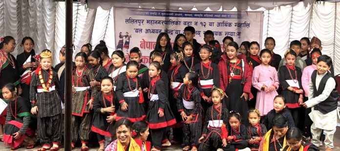 काठमाडौं । यल अध्ययन केन्द्रले १२ वडाका स्थानीय बालबालिकालाई तीन महिने नेपालभाषा, नेवार नृत्य, गायन, बाजा, खेल र वाचनकला प्रशिक्षण कार्यक्रम सम्पन्न गरेको छ । आदर्श कन्या निकेतन माध्यमिक विद्यालय, मंगल बजारमा सम्पन्न गरिएको प्रशिक्षणमा नेपालभाषा, साहित्य, संस्कृति प्रबर्धनको निम्ति आगामी आर्थिक वर्षमा पनि थप बजेटको ब्यवस्था हुने प्रमुखअतिथि ललितपुर महानगरपालिका वडा १२ का अध्यक्ष नारायण अवालेले बताउनुभयो । तुल्सीलाल सिंहको अध्यक्षतामा सम्पन्न कार्यक्रममा नेपालभाषा मंका खलः यलका अध्यक्ष महेन्द्र महर्जनले नेपालभाषाको विभिन्न खेलहरुबारे जानकारी मात्र नभइ खेल खेल्ने र खेलाउने तरिका पनि सिकाउन आवश्यक भएको बताउनुभयो ।