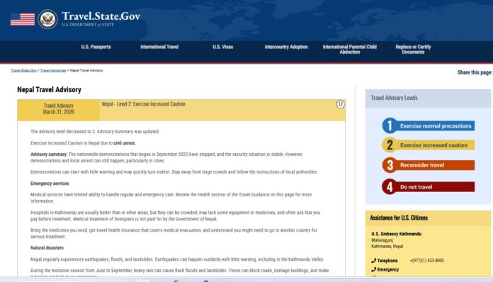 अमेरिकाद्वारा नेपाल भ्रमणसम्बन्धी ‘ट्राभल एडभाइजरी’ परिमार्जन